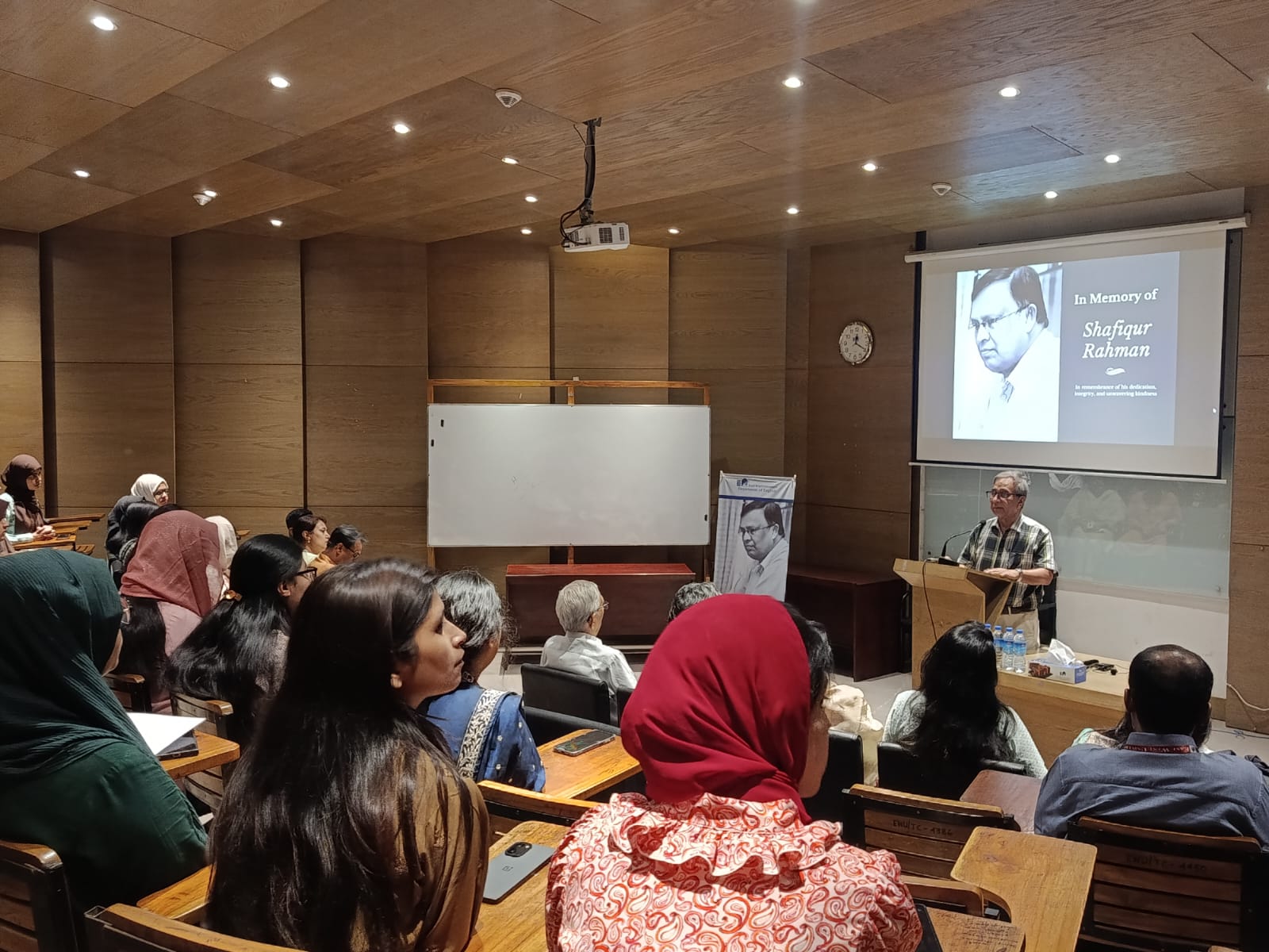 A memorial program was held in honor of the late Mr. Shafiqur Rahman, Assistant Professor and former Chairperson, Department of English, East West University, on Wednesday, April 15, 2026. The event took place from 12:00 PM to 1:30 PM at the Razia Samad Lecture Gallery, Room 242, at East West University. The program was hosted by Dr. Afia Arafat, Assistant Professor, Department of English. East West University.