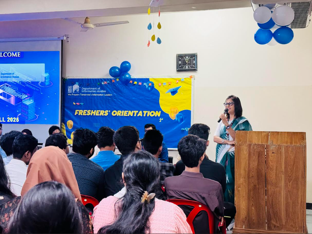 The Department of Information Studies, East West University organized a departmental orientation program for newly enrolled students of the Fall 2025 semester on 25 September 2025. The newly enrolled students were warmly welcomed with flowers.