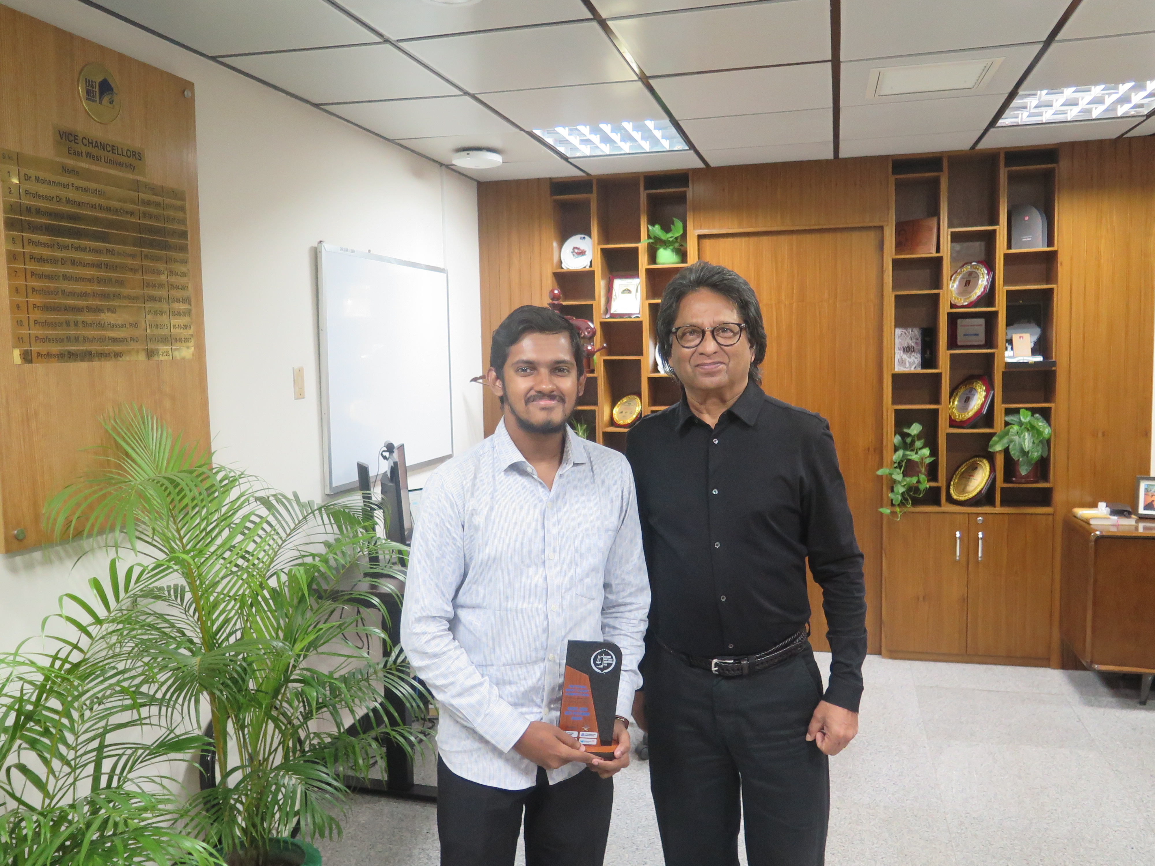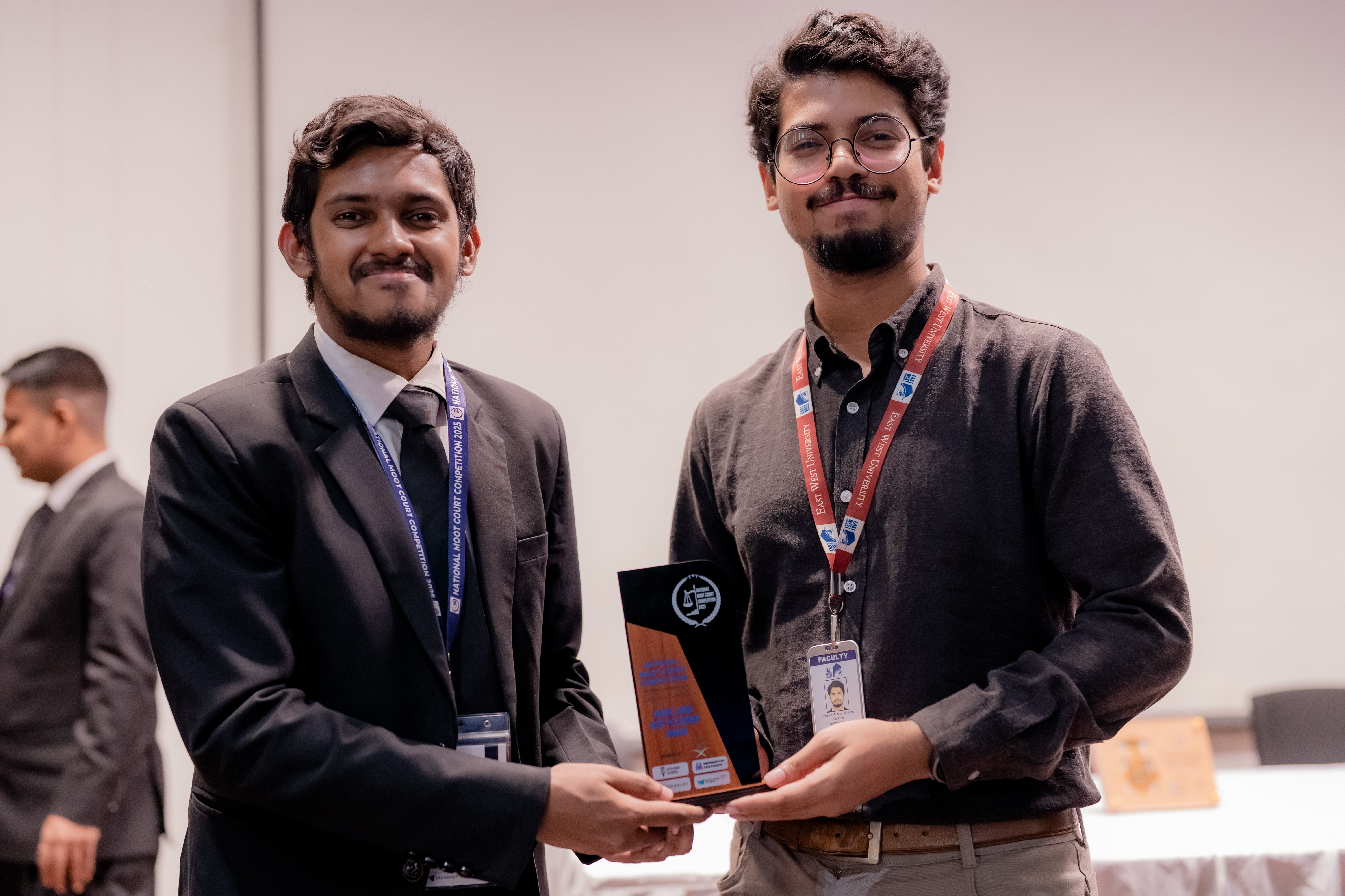 The competition also featured another outstanding team from East West University, mentored by Mr. Shaikh Mirazur Rahman, Lecturer, Department of Law, under the constant guidance of Ms. Oishe Rahman, Lecturer, Department of Law, which advanced to the semi-finals. Kazi Ayman Awsaf, a member of that team, received the Best Petitioner Award, further showcasing EWU’s depth of talent and excellence in mooting.