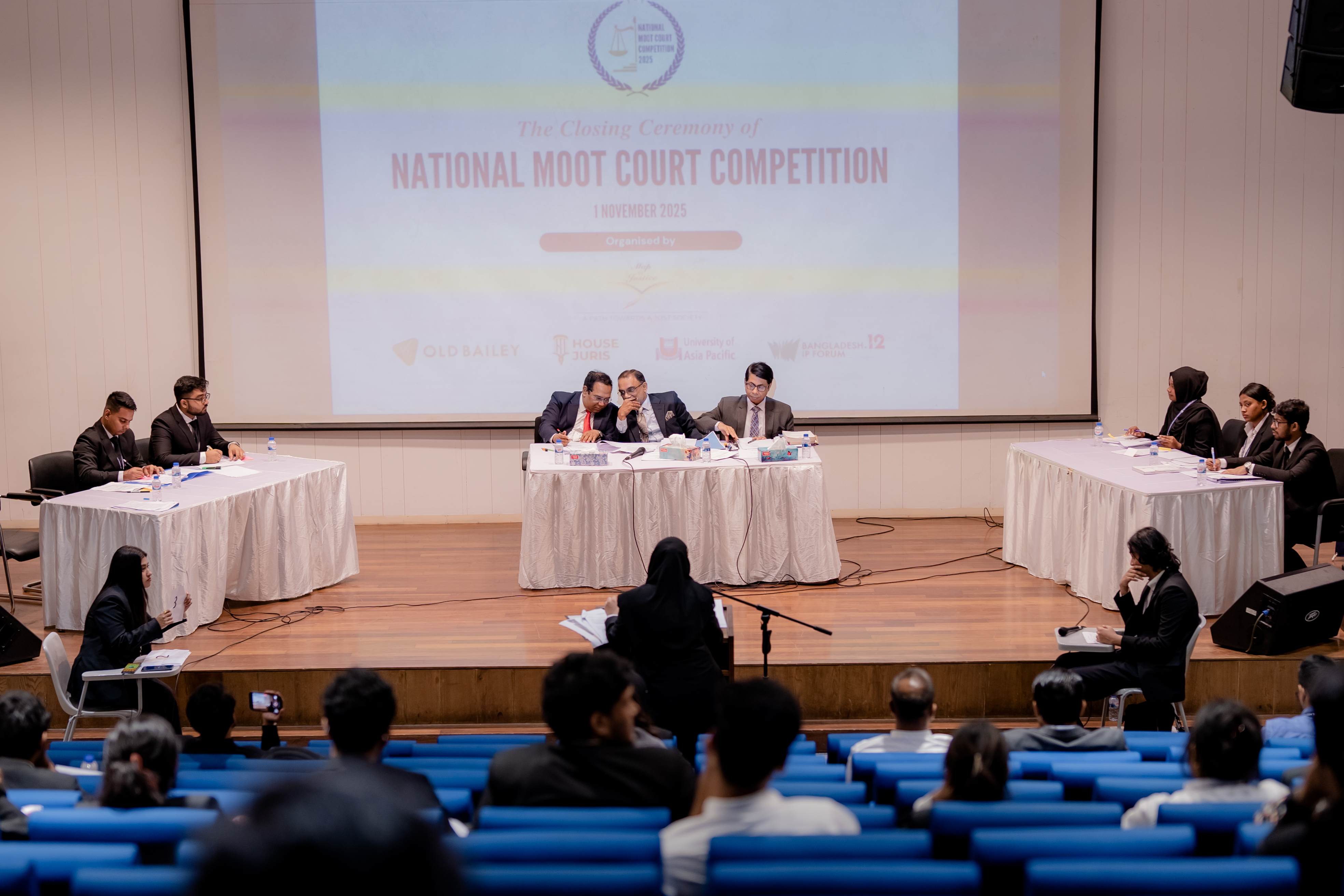 It was a highly competitive event featuring 26 teams from 20 leading public and private universities across Bangladesh, including the University of Dhaka, University of Chittagong, North South University, Independent University (IUB), and American International University–Bangladesh (AIUB), among others. The judges panels were presided over by Hon’ble Judges of the High Court Division of the Supreme Court of Bangladesh.