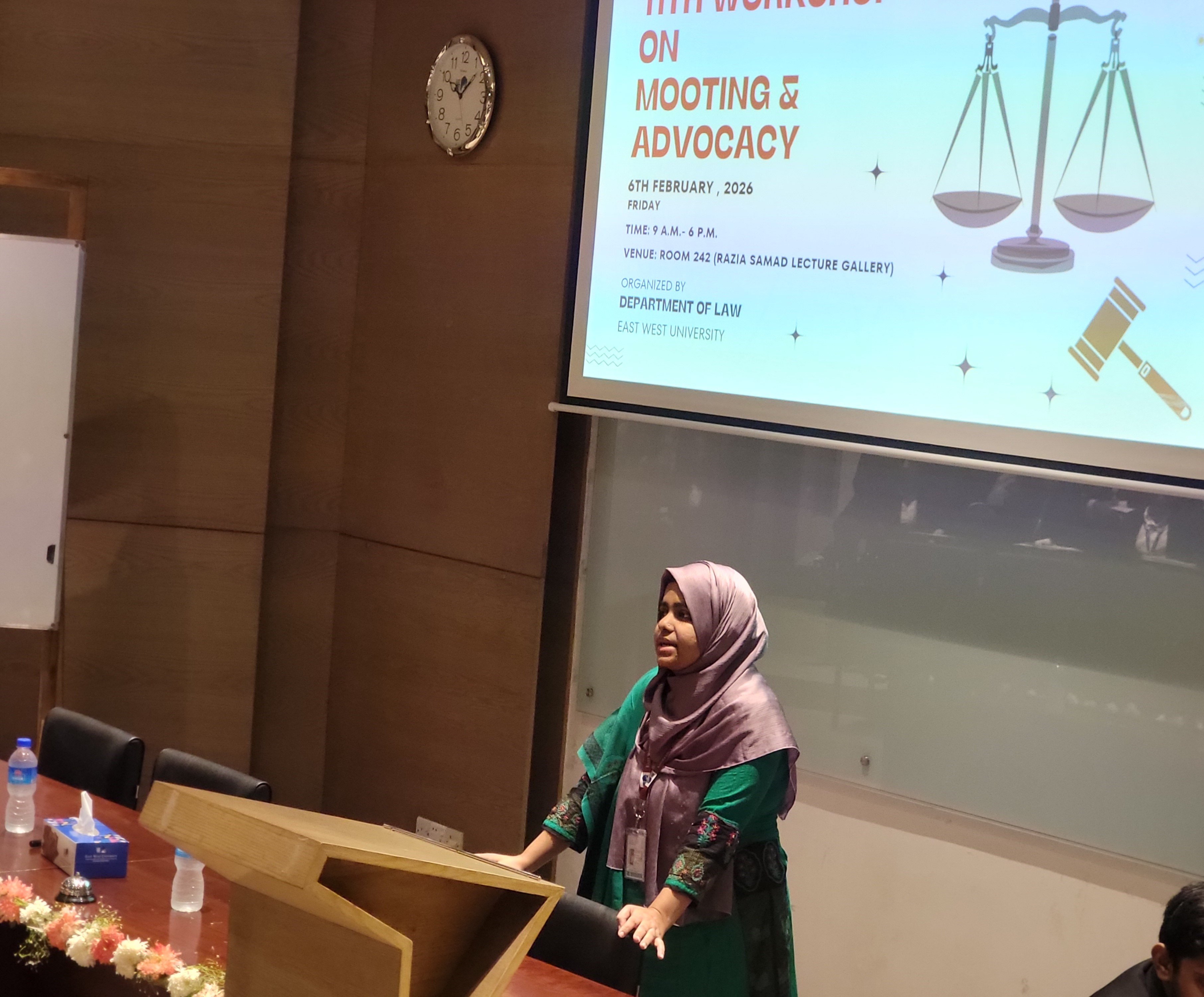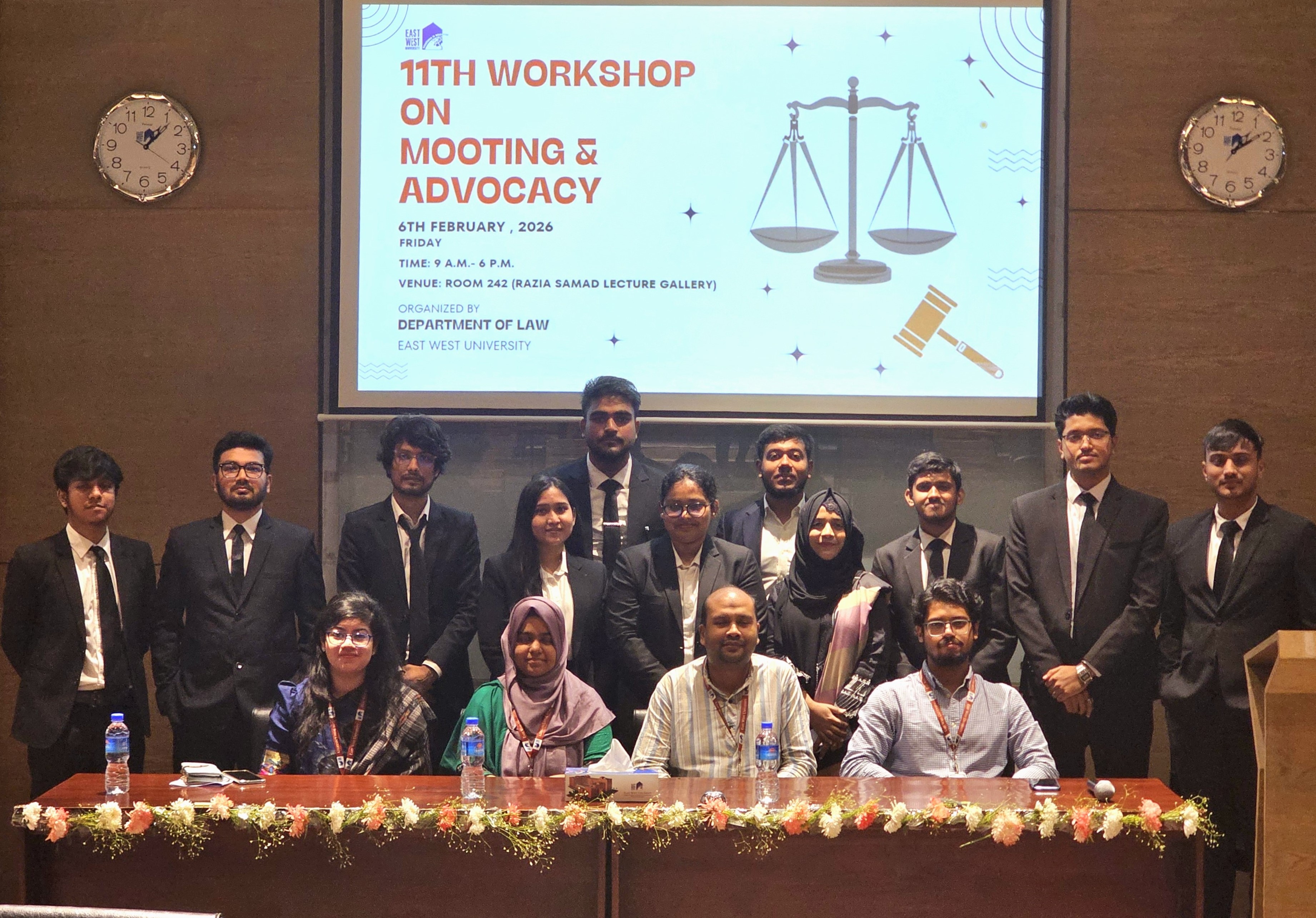 The Department of Law at East West University hosted its 11th Workshop on Mooting and Advocacy Skills on Friday, February 6, 2026. The day-long program was attended by 75 enthusiastic first-year law students.