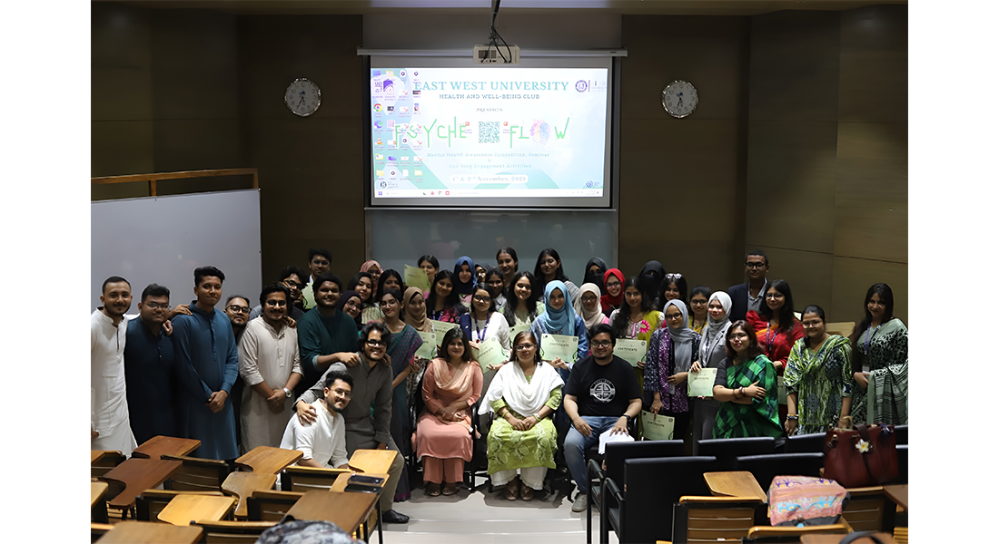 Students from the Department of Social Relations (DSR), under the Population and Public Health Sciences (PPHS) program, achieved remarkable success in the Psyche Flow – Mental Health Awareness Competition, held on 2 November 2025. The event was organized by the East West University Health and Well-being Club in collaboration with Bejoy Counseling & Wellness Institute and Team BSS.
