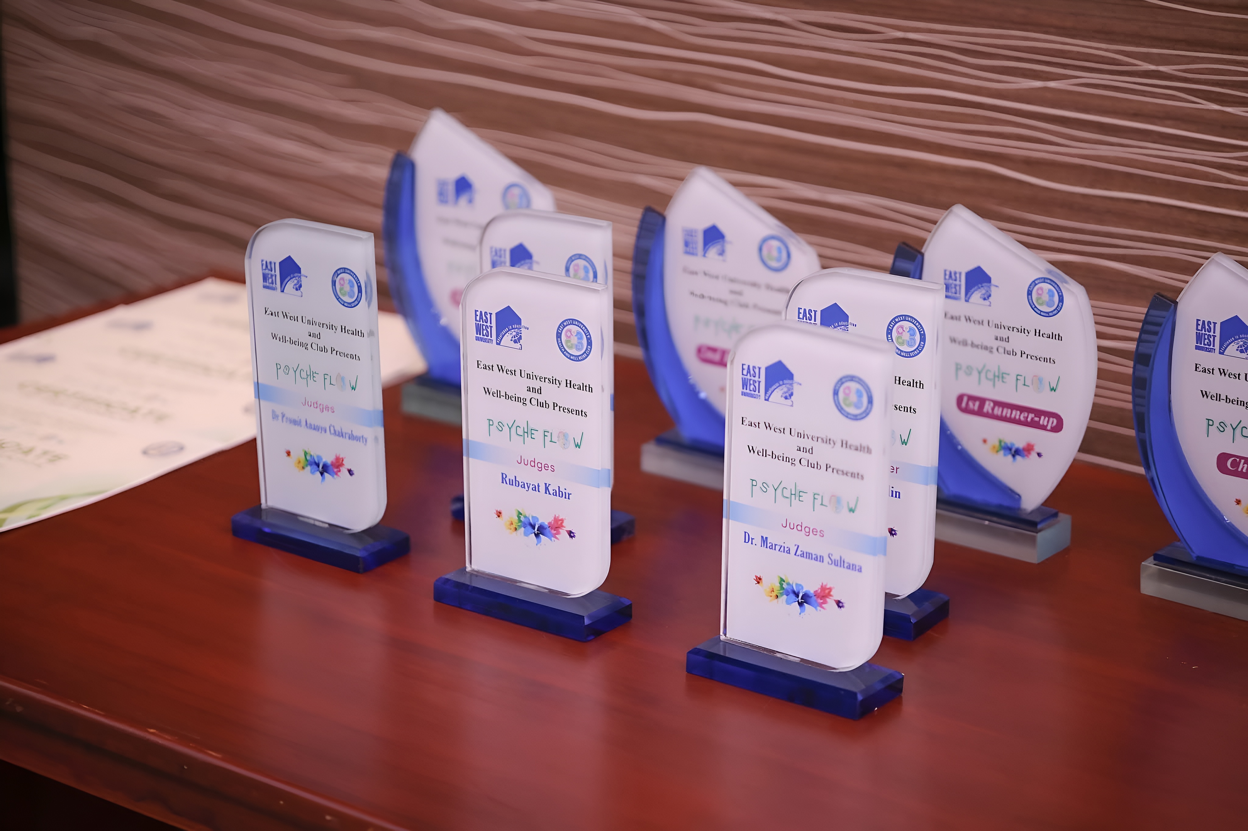 Among the top achievers, Purnota Rahman, a 2nd-semester PPHS student, secured the Champion title, while Rifa Tasfia, a 7th-semester PPHS student, earned the position of 1st Runner-up. Both students were awarded crests, prize money, and certificates, presented by the Honorable Vice Chancellor of East West University.